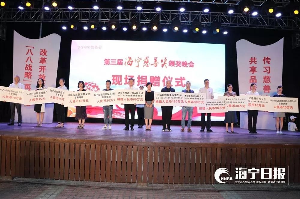 昨天晚上,由海寧市人民政府主辦的第三屆“海寧慈善獎”頒獎晚會在海寧文化館廣場盛大舉行,19個“捐贈企業(yè)獎”、10名“慈善之星”、10個“慈善組織獎”、10個“慈善項目獎”受到了表彰。本集團獲得了“捐贈企業(yè)獎”榮譽稱號。評選委員會給予“捐贈企業(yè)獎”的頒獎詞是:“如果說企業(yè)家身上要流淌著道德的血液,那么,企業(yè)就是社會責任的承擔者和社會良心的守望者。在海寧,有一大批企業(yè),如萬川歸海,用創(chuàng)新涌起經(jīng)濟的浪潮,用慈善重寫財富的價值?!?/span>