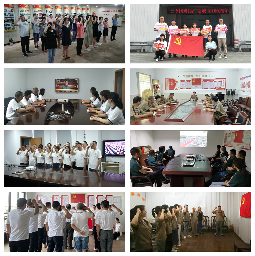 7月1日,是偉大的中國共產(chǎn)黨成立100周年,舉國上下普天同慶,卡森集團(tuán)也不例外。當(dāng)天一大早,公司黨委全體黨員滿懷激情,在各支部書記的帶領(lǐng)下,開展重溫誓詞、觀看《慶祝中國共產(chǎn)黨成立100周年大會》直播、高唱《中華人民共和國國歌》、《沒有共產(chǎn)黨就沒有新中國》等,慶祝黨的100周歲生日。