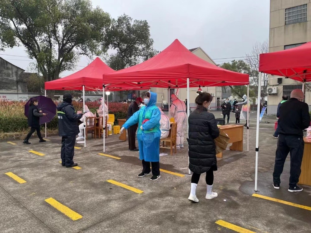 當(dāng)天,是全鎮(zhèn)做核酸檢測的日子,黨員們帶著N95口罩,口袋里還放一小瓶消毒酒精,來到了鎮(zhèn)政府的核酸采集點(diǎn),每位志愿者、黨員干部紛紛忙碌著,進(jìn)大門的每一個人,志愿者都要檢查健康碼是否是綠色的,然后再測量體溫。一共有兩個通道,其中一個是愛心通道,老人和小孩都可以從愛心通道通過。排隊的人都留了一米遠(yuǎn)的間隔,那是安全距離,防止病毒攜帶者交叉感染。公司黨員不顧淋著雨,口中重復(fù)著:這邊排隊,一米安全距離,打開健康碼,戴好口罩……