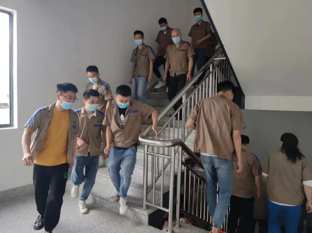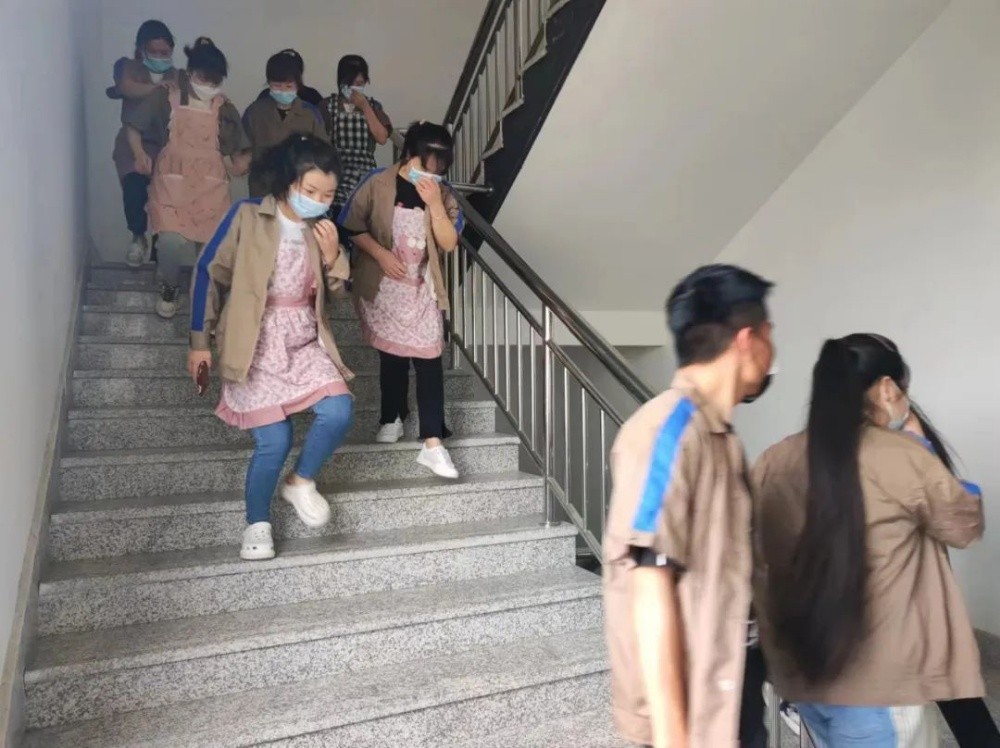 公司領(lǐng)導(dǎo)在得知火場情況后(火警鈴響起),立即作出全部疏散命令,各車間主任、班組長有序組織人員通過疏散逃生通道撤離到“緊急集合點(diǎn)”并及時(shí)清點(diǎn)人員。