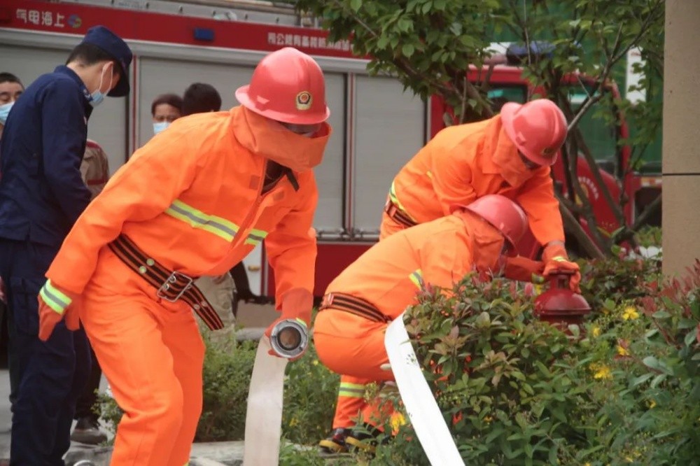 任何人員發(fā)現(xiàn)火災(zāi)后應(yīng)立刻呼叫附近員工參與滅火救援,在一分鐘內(nèi)組成第一滅火力量。在鎮(zhèn)消防隊(duì)的指導(dǎo)下,通過演練干粉滅火器滅火、推車滅火器、水帶連接消火栓出水演練,使員工掌握發(fā)生火災(zāi)后正確的滅火力量調(diào)配和撲救步驟。