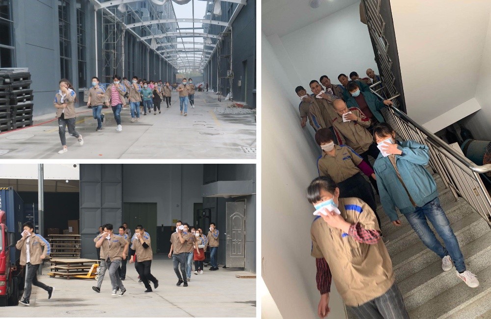 隨著警報(bào)響起,應(yīng)急疏散演練正式開始,全體員工聽到警報(bào)聲后,各車間班組長(zhǎng)在門口引導(dǎo)員工迅速離開車間,員工用濕毛巾之類物品捂住口鼻,彎腰低姿快速有序地沿防火安全疏散通道向外跑。各部門負(fù)責(zé)人將員工引導(dǎo)至空曠安全地帶,各班組長(zhǎng)在確保車間內(nèi)人員全部離開后,迅速沿員工疏散方向撤離,隨即各車間主任清點(diǎn)人數(shù),并層層向上匯報(bào)。