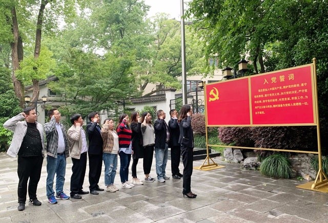 下午3時(shí),黨員們?cè)谥脴I(yè)公司會(huì)議室刷卡簽到后,隨即來到了北山路上的中國共產(chǎn)黨杭州歷史館進(jìn)行考察學(xué)習(xí)。雖然下午的天氣陰雨綿綿,但參觀的人群仍然絡(luò)繹不絕,把面積不大的場(chǎng)館擠得滿滿當(dāng)當(dāng)。在講解員的介紹下,黨員們參觀了館內(nèi)全部三個(gè)展廳,這三個(gè)展廳分別展示了1921年至1949年黨領(lǐng)導(dǎo)下的杭州新民主主義革命歷史、1949年至1978年杭州社會(huì)主義革命和建設(shè)的歷史、以及1978年至2018年40年來杭州地方黨史的發(fā)展歷程,重點(diǎn)展示了以習(xí)近平同志為核心的黨中央引領(lǐng)中國特色社會(huì)主義進(jìn)入新時(shí)代以來杭州經(jīng)濟(jì)社會(huì)各項(xiàng)事業(yè)在發(fā)展中取得的輝煌成就。通過展廳內(nèi)一幅幅珍貴的歷史照片和幾百件各個(gè)時(shí)期的歷史文物,黨員們了解了杭州地方黨組織領(lǐng)導(dǎo)人民進(jìn)行革命、建設(shè)的奮斗史,看到了杭州人民在黨的領(lǐng)導(dǎo)下,敢為人先、追求卓越、為爭取國家獨(dú)立民族解放立下的功勛,以及為探索社會(huì)主義道路90余年艱辛的歷程。隨后,在支部沈書記的帶領(lǐng)下,黨員們還在館內(nèi)宣誓墻前,重溫了入黨誓詞。