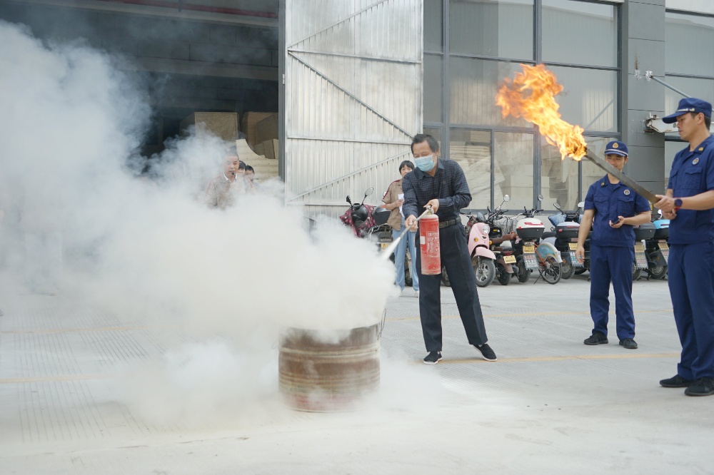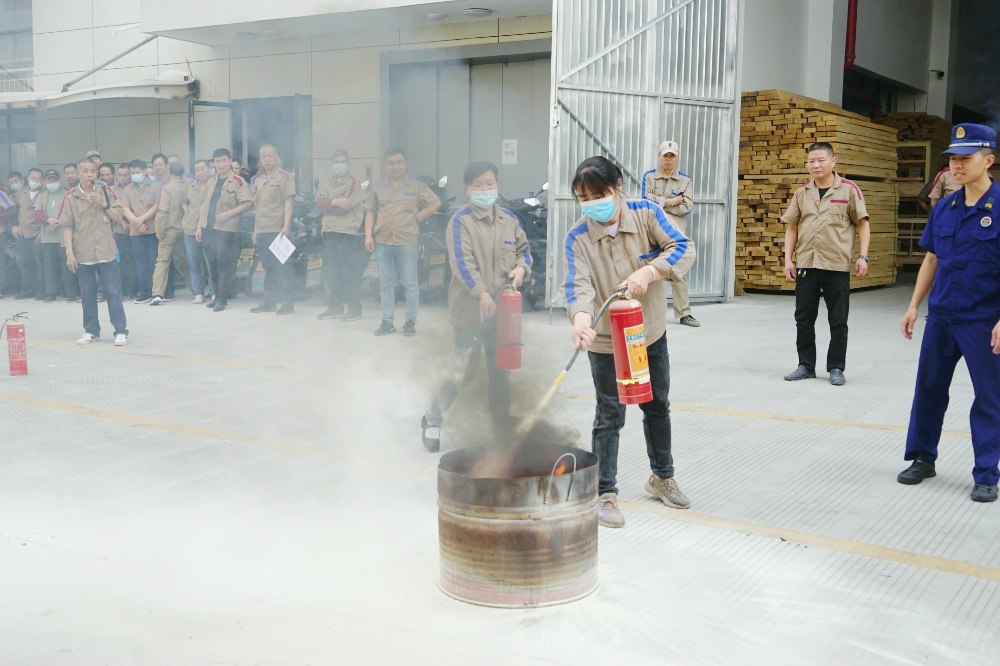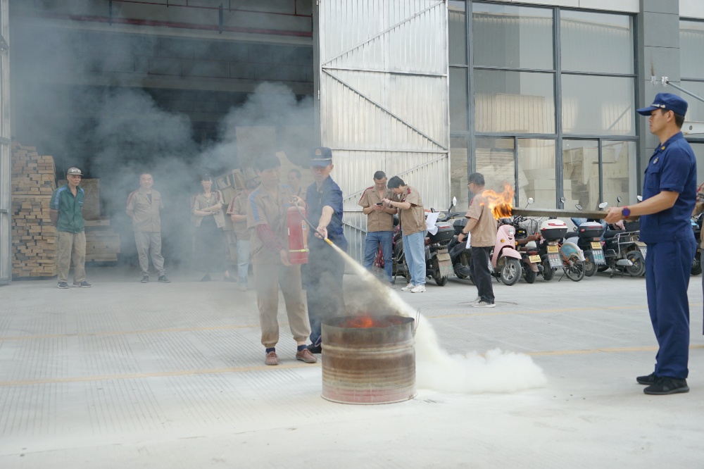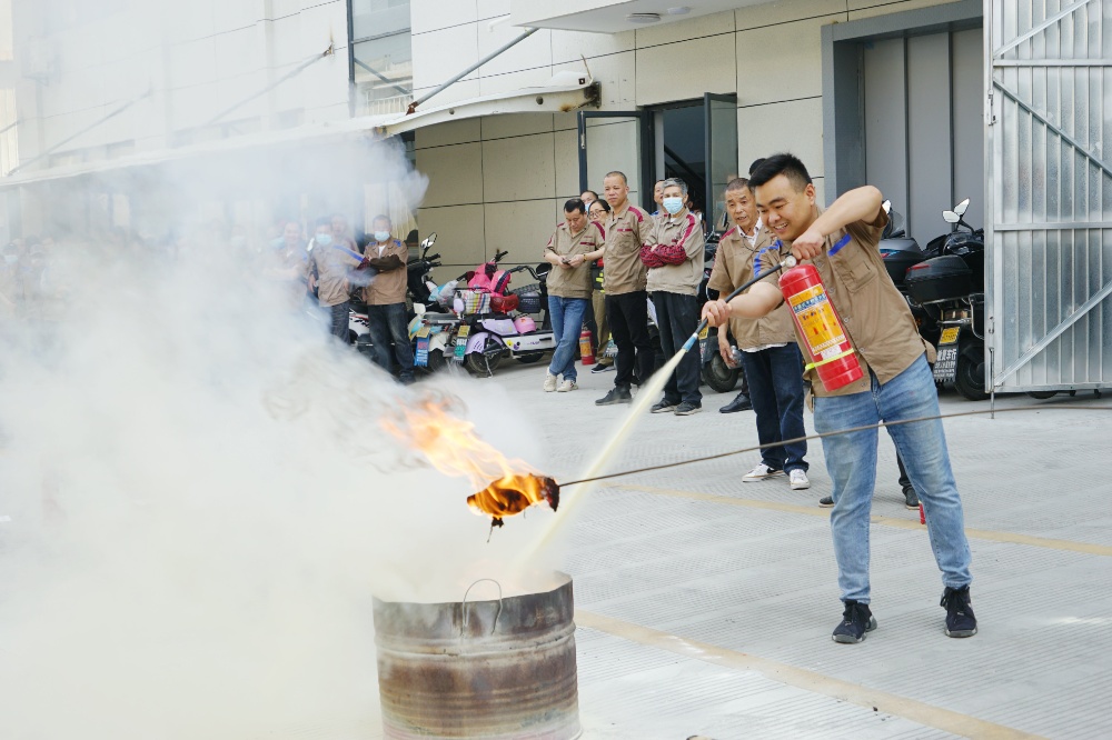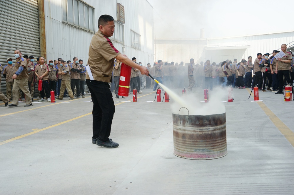 首先由車間主任、班組長等進行操作示范,隨后由新員工們輪流使用滅火器訓練,對不當操作進行現(xiàn)場糾正,力求使公司每位員工都能熟練掌握滅火技能。