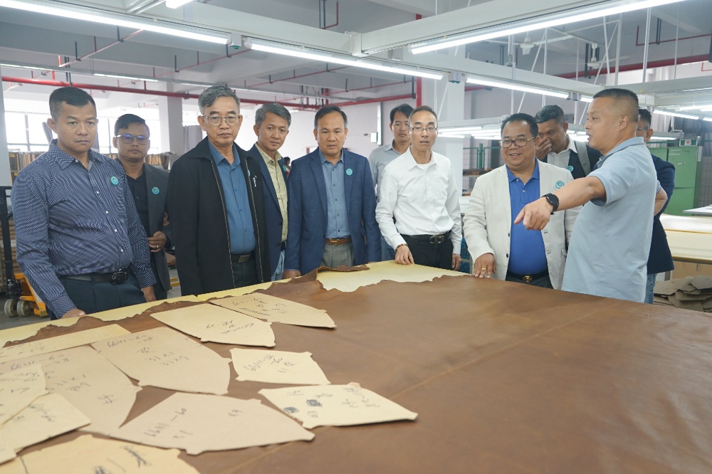隨后,訪問團(tuán)一行到斜橋工廠區(qū)進(jìn)行參觀訪問。在漢林沙發(fā)有限公司,總經(jīng)理朱建林帶大家參觀了沙發(fā)制造車間和成品車間;在制革事業(yè)部,副總經(jīng)理謝柏?zé)槑ьI(lǐng)大家參觀了皮革制造車間。